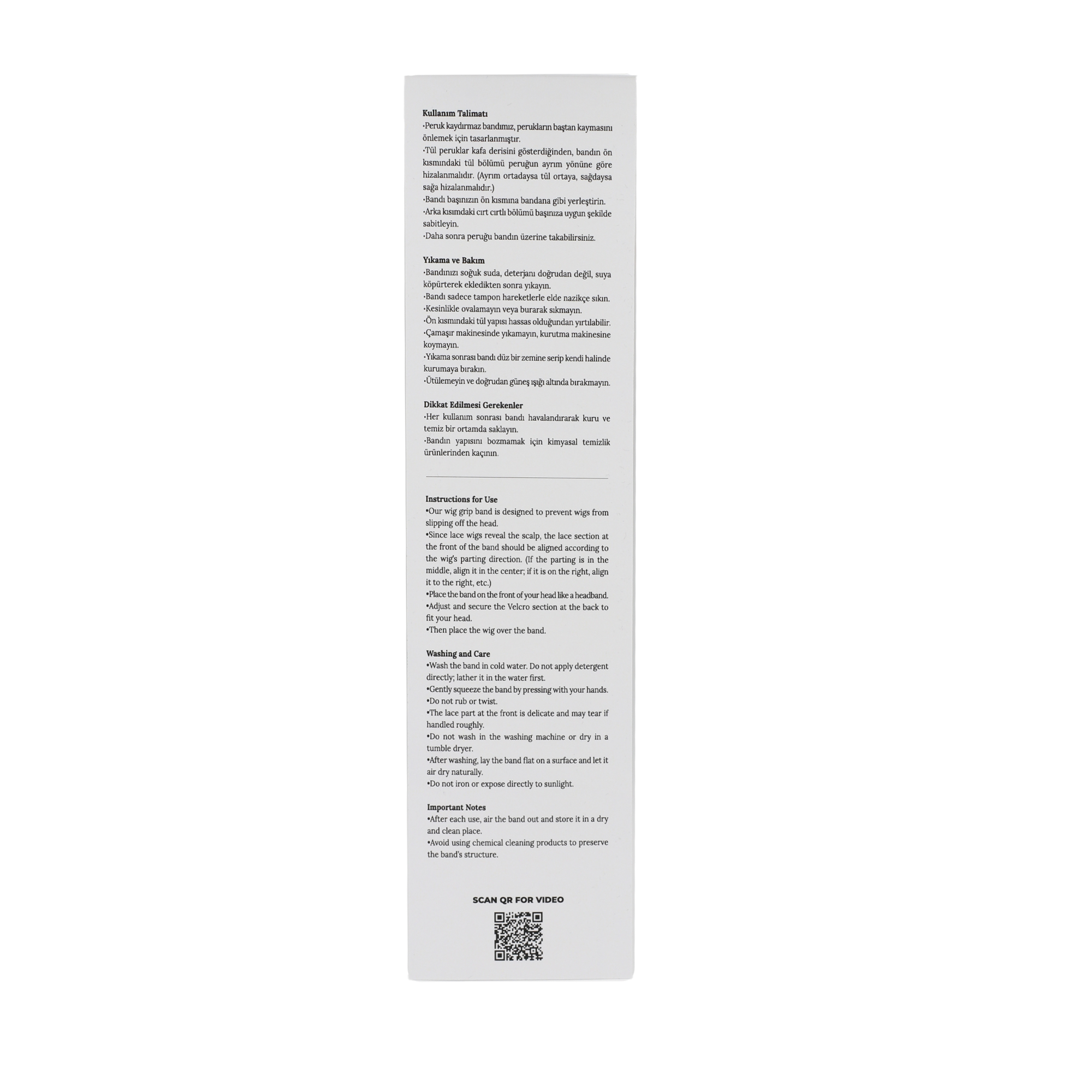 Peruk Kaydırmazının üzerinde bulunan tül kısmını, Peruğunuzun saç ayrım noktasına denk gelerek bandana takar gibi takınız.